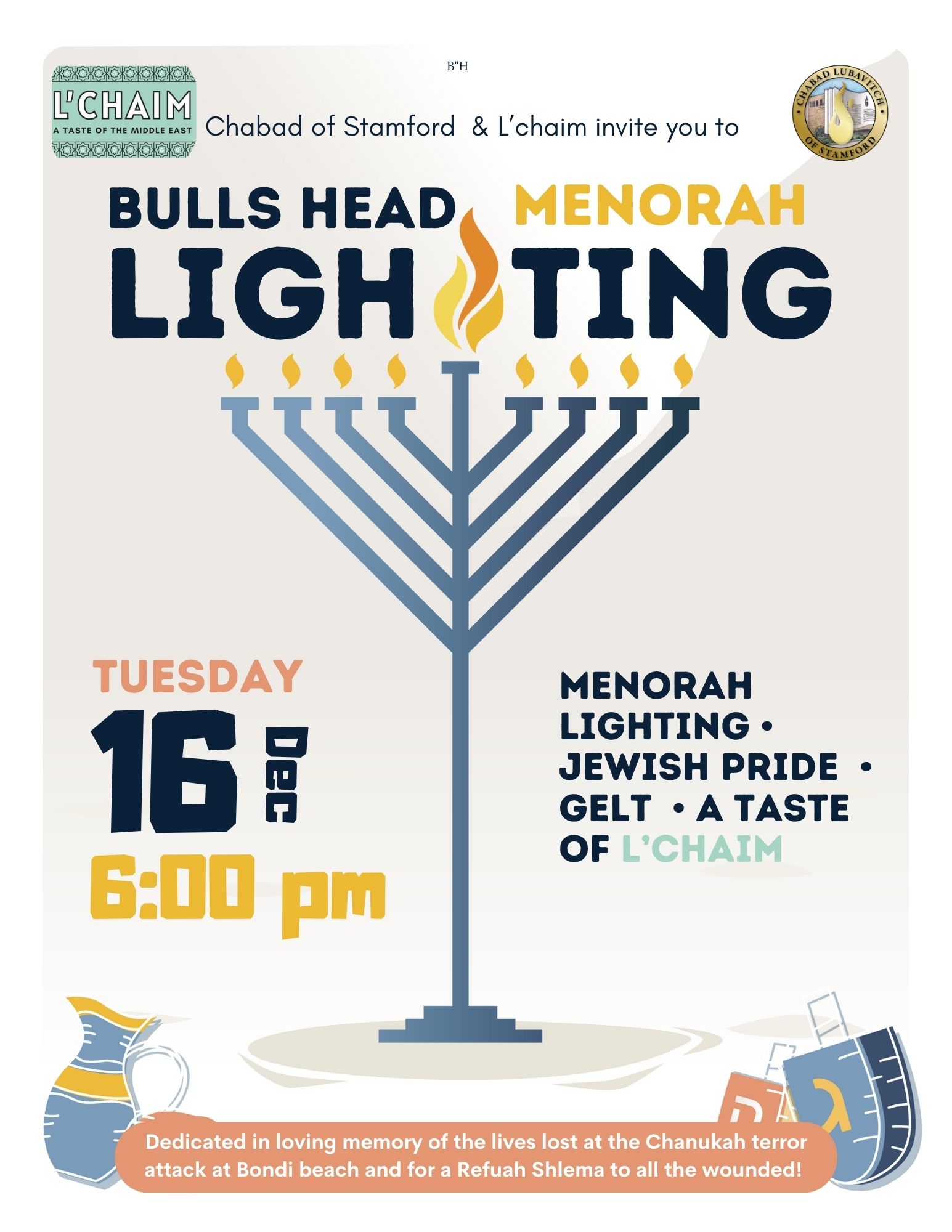 JOIN US OUTSIDE L'CHAIM RESTAURANT FOR A PUBLIC MENORAH LIGHTINGÂ