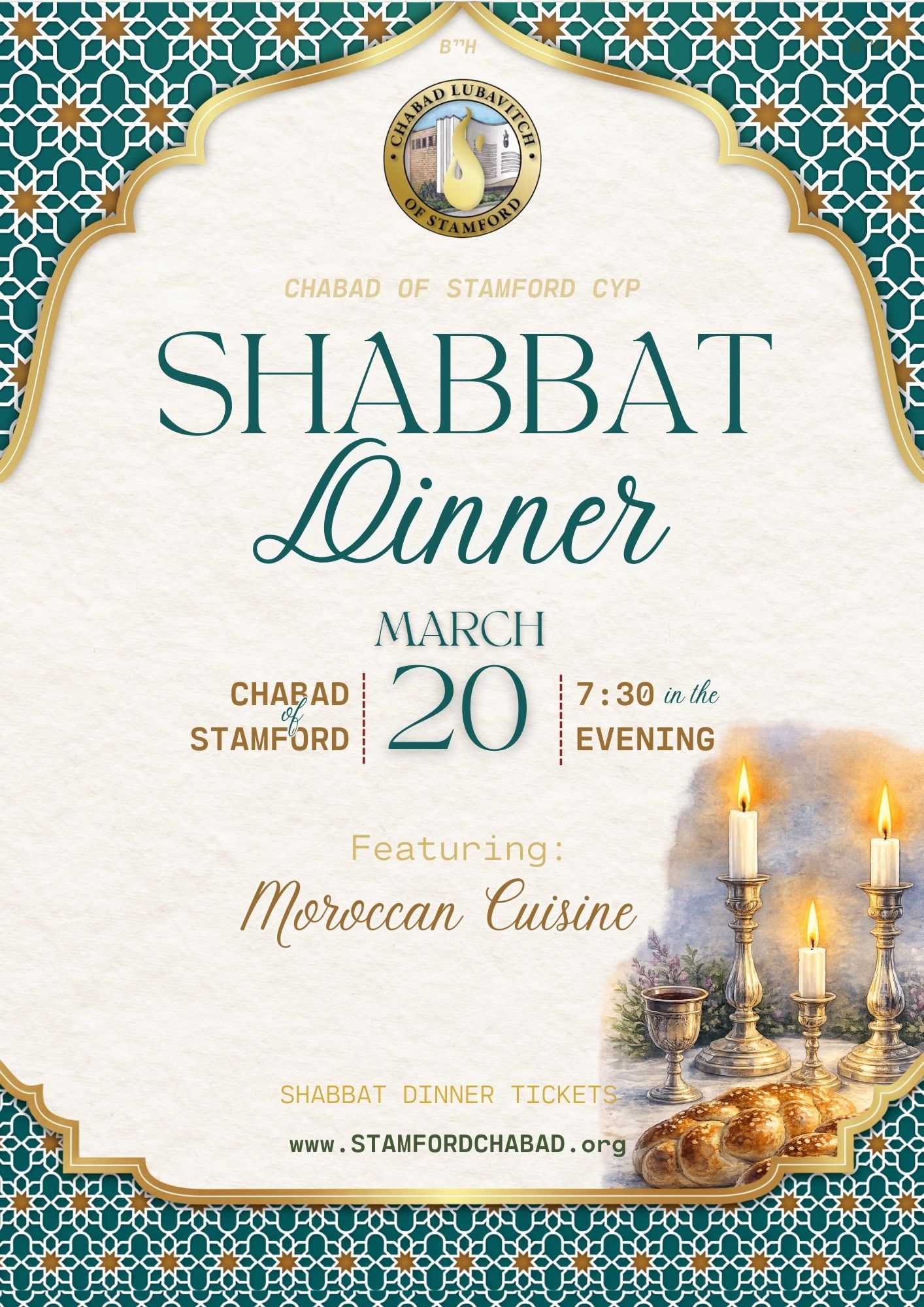 Join fellow young professionals for a fun and inspiring Shabbat Dinner featuring a delicious Moroccan cuisine experience catered by Chef Nechami Atia.