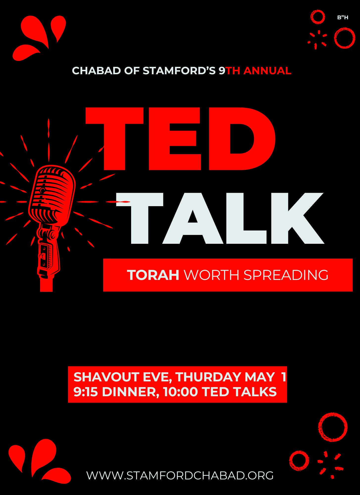 Submit your TEDtalk topic* to Rabbi Moshe at  rabbimoshe@stamfordchabad.org