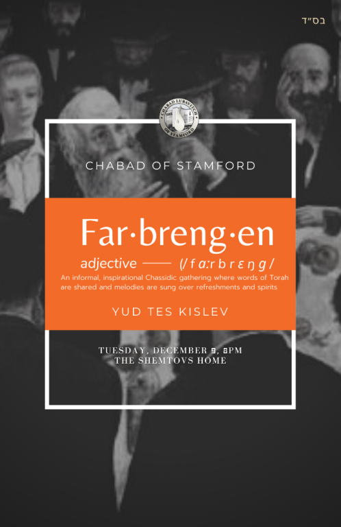 WEDNESDAY JAN 28 - Yud Shevat Farbrengen marking the passing of the previous Rebbe and the day the Rebbe assumed leadership of Chabad Lubavitch. Celebrating the leadership of the Rebbe.