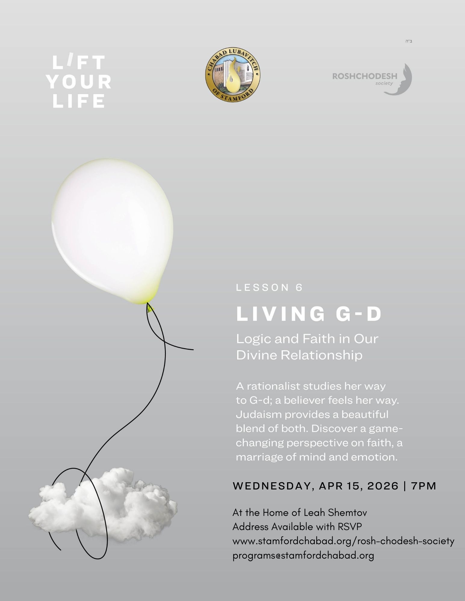 The Rosh Chodesh Society is pleased to introduce a new seven-part course, Lift Your Life, which invites you to re-examine your basic activities and life features—from sleep, emotional mastery, food, and happiness, to communication, faith, and personal growth. It offers profound perspectives along with doable tools of implementation”all in the light of Jewish wisdom.
